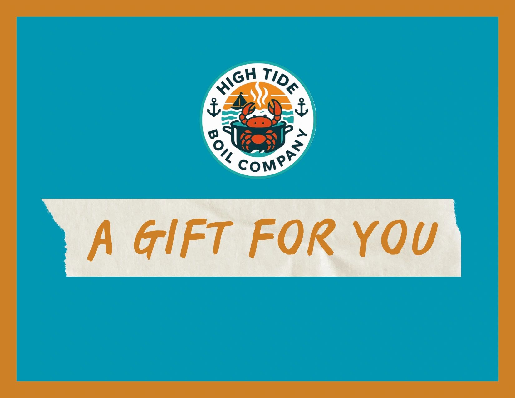 Give the gift of flavor! A High Tide Boil gift card is the perfect way to treat friends and family to a coastal feast. Pick the amount, add a personal note, and let them enjoy a seafood boil their way.
